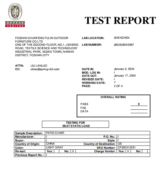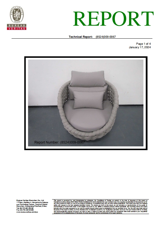 Our company’s outdoor sofas are certified by Bureau Veritas, ensuring that our customers enjoy the highest quality and safety standards when choosing our products for their outdoor living spaces.